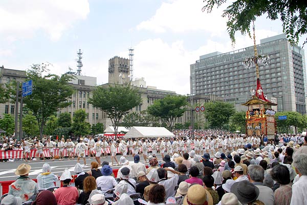 菊水鉾を引く大勢の人。