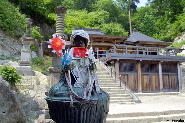 お地蔵さんに供えられた風車が回る奥の院。